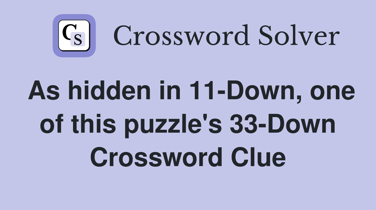 As hidden in 11Down, one of this puzzle's 33Down Crossword Clue