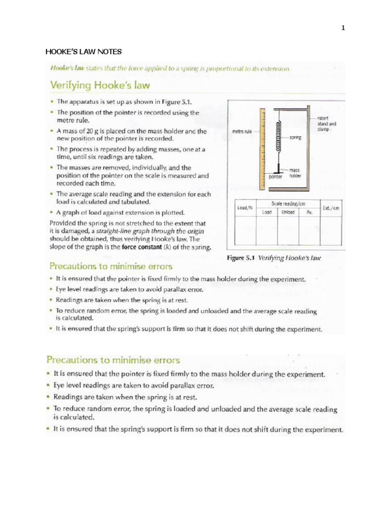 (PDF) Hooke's Law Experiment Hooke's Law Notes Pdf Learn about hooke's law, which states that the force applied to a material is directly proportional to its extension within its elastic limit. Hooke's law states that a force applied to a spring will cause it to extend by an amount proportional to the force. Learn about hooke's law, the linear relationship between the force and displacement of a spring,. Hooke's Law Notes Pdf.