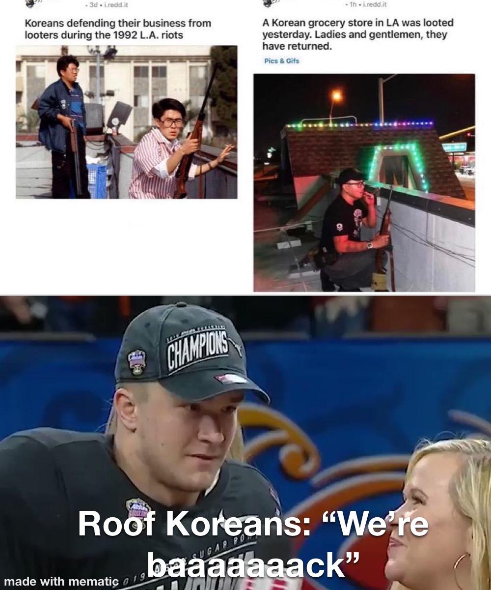 Rooftop Korean If you’re interested, i did publish a small 5 minute documentary on the la riots and koreatown in general, and planning on a longer one focused on the rooftop koreans and interviews more. Find out how they became a viral meme and what they think of it today. Learn about the history and significance of the roof koreans, or rooftop. Rooftop Korean.