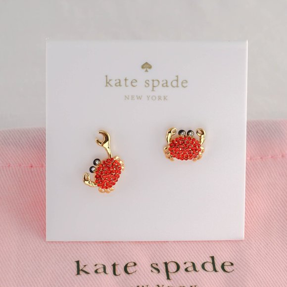 kate spade Jewelry Kate Spade Pav Red Crab Stud Earrings With Dust