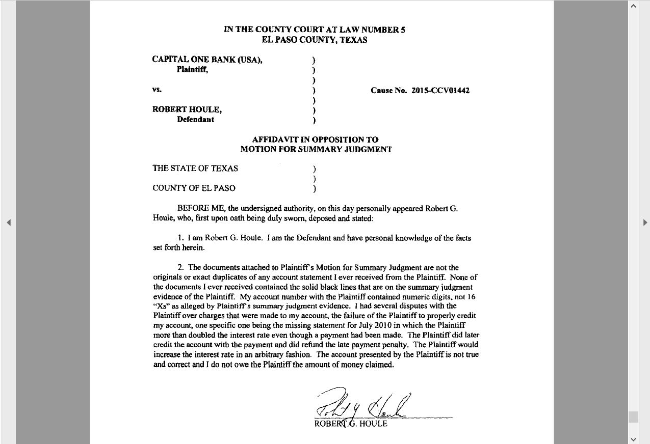 Consumer Debt Litigation (mostly Texas) Are counteraffidavits
