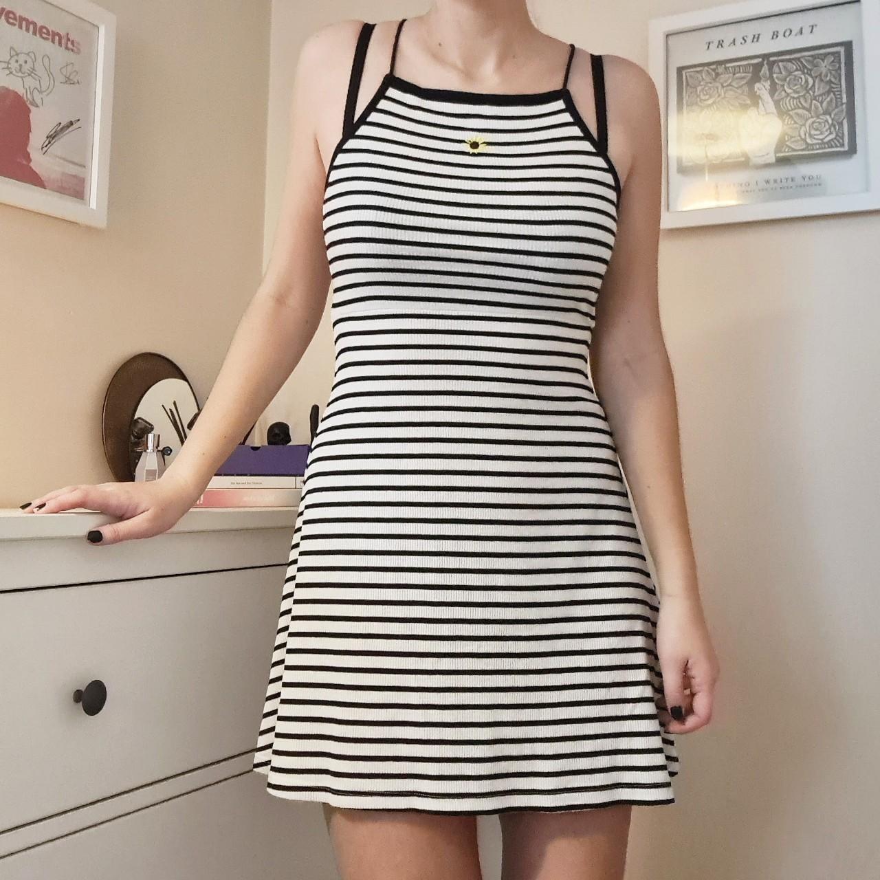 Women's Black and White Dress Depop