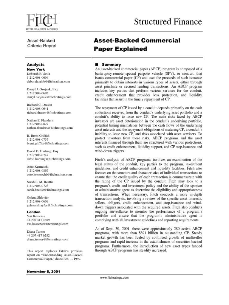 Fitch Ratings] AssetBacked Commercial Paper Explained Asset Backed Commercial Paper Explained It is typically issued by large banks or corporations to. what is commercial paper? commercial paper is a form of unsecured debt that allows companies to bypass a traditional lender, according to the sec. commercial paper is an unsecured form of promissory note that pays a fixed rate of interest. Commercial Paper Explained.