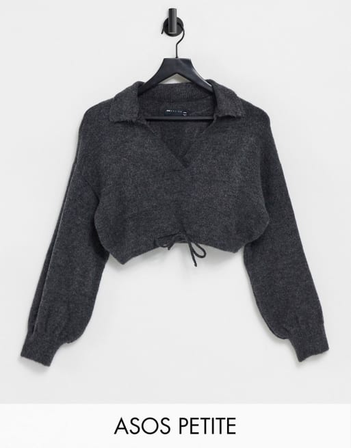 ASOS DESIGN Petite crop jumper with collar and joggers coord in charcoal ASOS