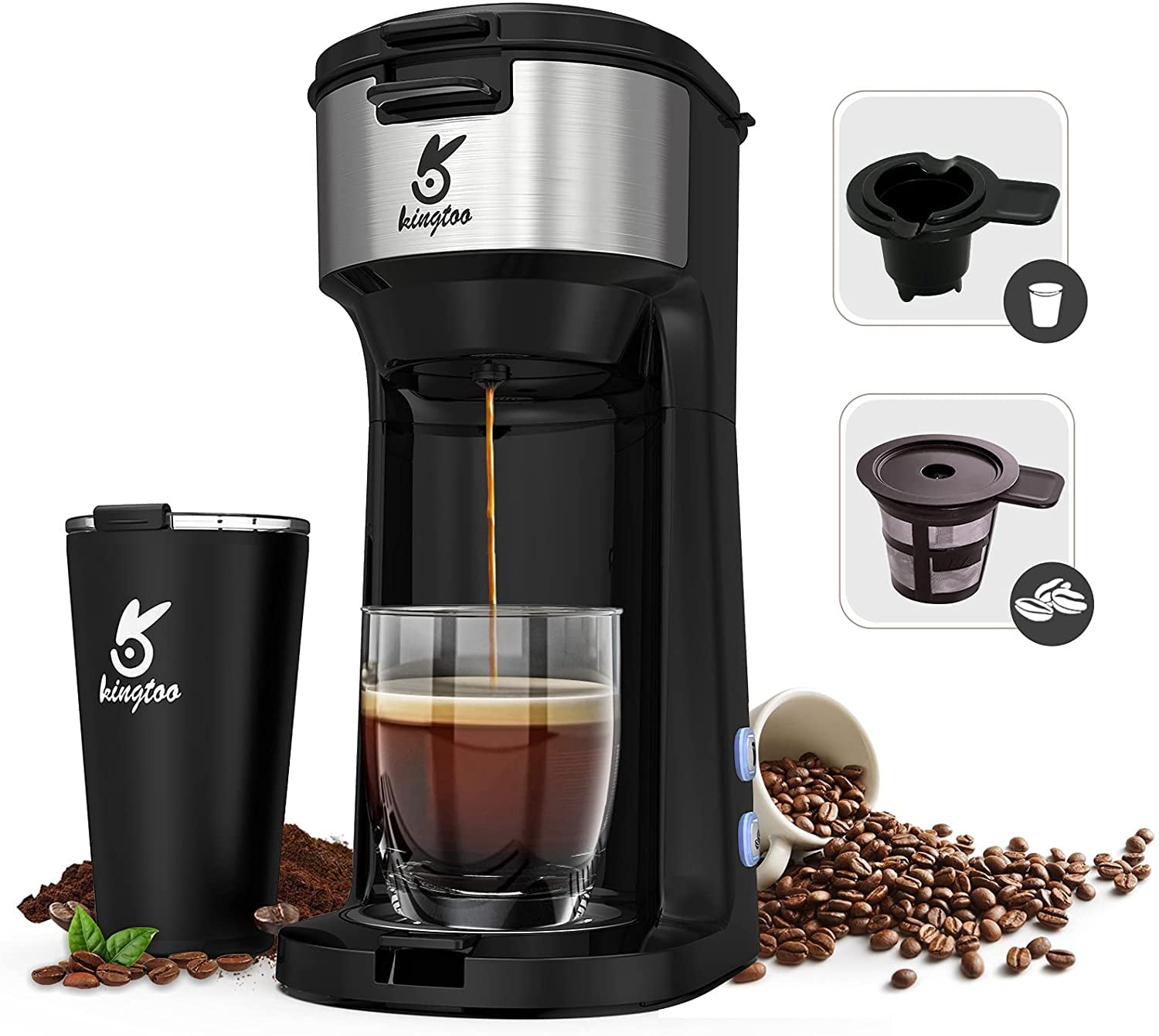 KINGTOO Coffee Maker with Milk Frother Single Serve Coffee Maker for KCup Pod & Ground Coffee