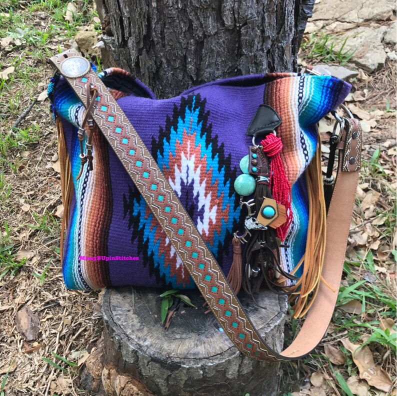 Serape Saddle Blanket Bag Purple Saddle Blanket Tote Leather Etsy