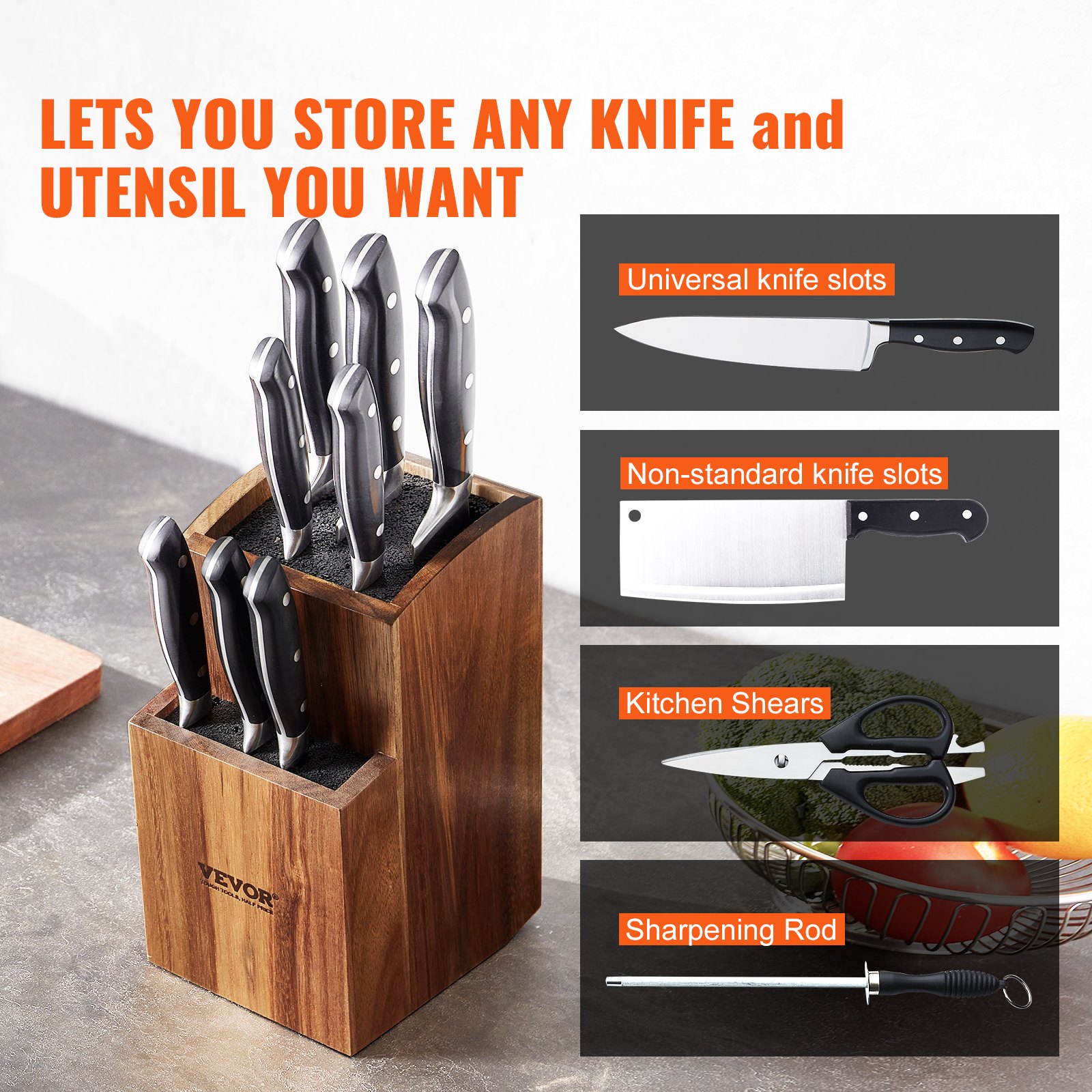 Knife Block Wooden 20 slot universal knife block: Chef craft’s select drawer wooden knife block is the perfect kitchen accessory to store your small and large knives. Easily access your knives, and free up your kitchen countertop! Knife blocks and storage in wood offer durability and elegance. Check out our wooden knife blocks selection for the very best in unique or custom, handmade. Knife Block Wooden.
