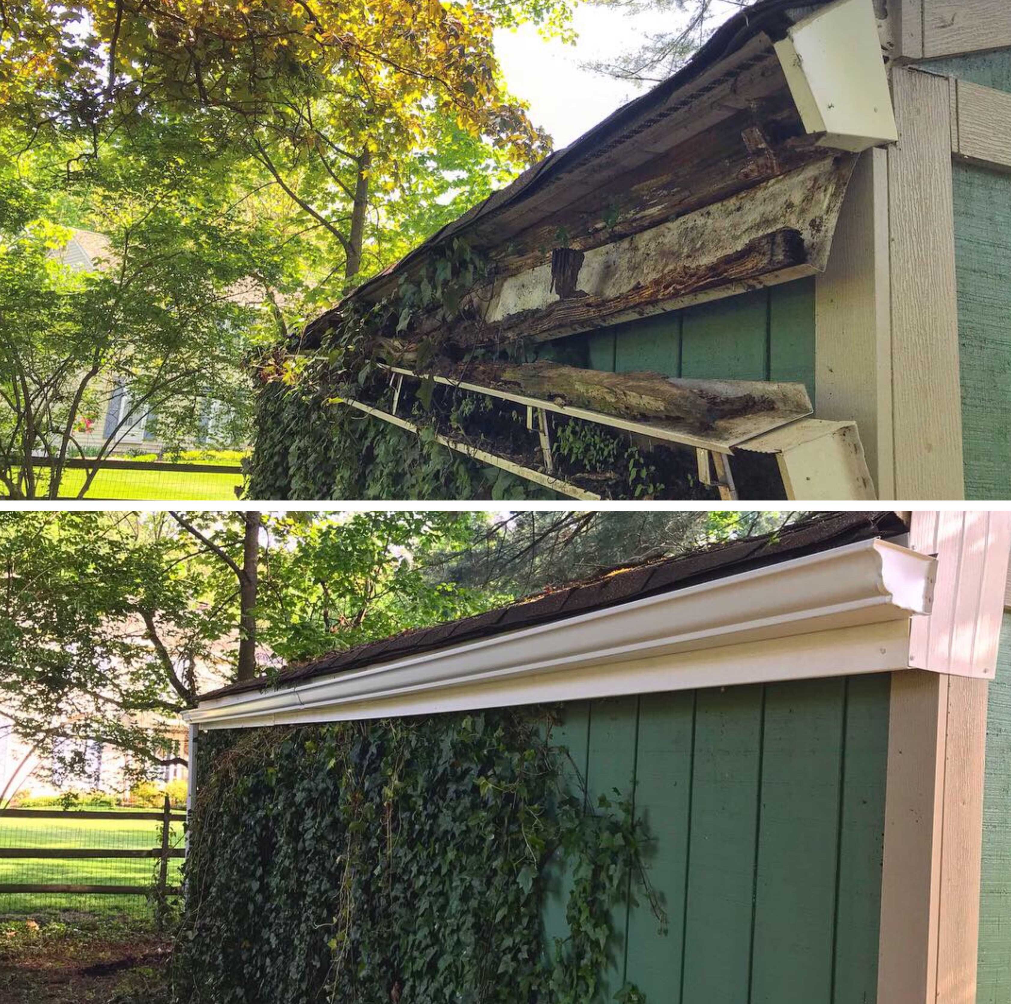 Before and After Green Bay, Wisconsin LeafGuard Gutter Installation Painted Gutters Before And After For maximum paint adhesion, clean the inside and outside of the gutters thoroughly using a. It’s a great way to liven up the exterior of your home. The answer to this question depends on a few factors. The current ones leak, don't drain completely, need. Gutters and downspouts can be painted using exterior paint or spray paint. Simply make sure. Painted Gutters Before And After.