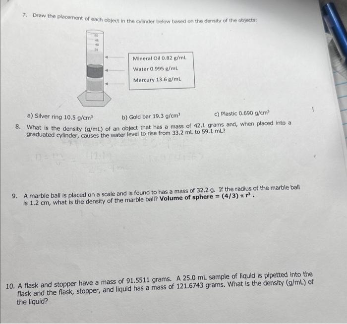 Solved 7. Draw the placement of each object in the cylinder Density Of Cooking Oil G/Cm3 The oil analysis revealed saponification value of 0.84. Cooking oil density varies from 0.91 to 0.93 g/ml, depending on the type of oil and its temperature. Castor oil 0.969 sea water: Recalculation of the density of oil for different temperature and pressure values. Online api to specific gravity calculator. Api expresses the gravity or density of liquid petroleum products. =. Density Of Cooking Oil G/Cm3.