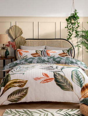 Sleepdown Seersucker Tropical Leaf Duvet Set in Green Home