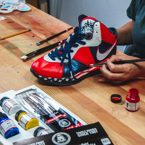 Paint Shoes Angelus Tackle your next custom project using the angelus leather paint basics kit. Angelus paint is the most trusted acrylic leather paint for custom sneakers, shoe restoration, and shoe care. Water based acrylic paints for a multitude of surfaces and the brand leader for all types of shoe art. Includes the acrylic paint you need to get started on your custom. Paint Shoes Angelus.
