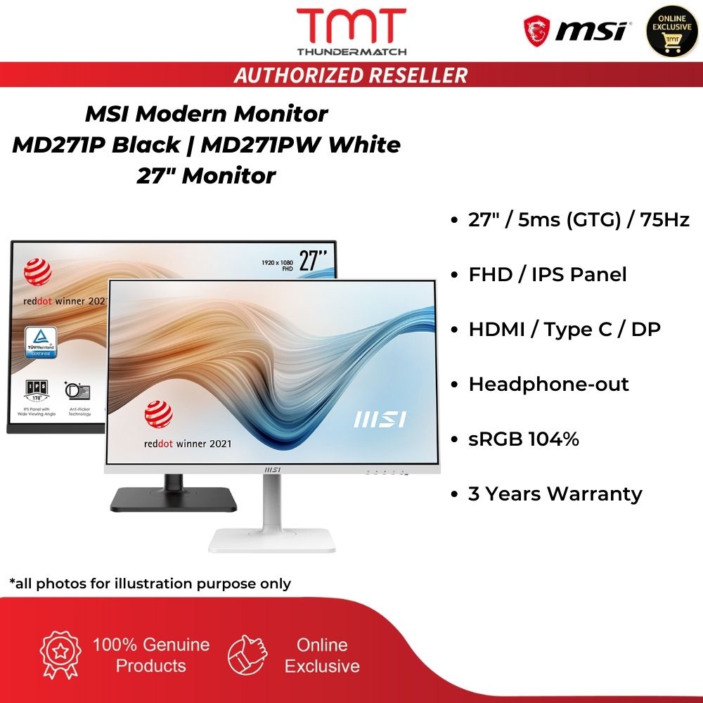 MSI Modern Monitor MD271P Black / MD271PW White 27" / 5ms / 75Hz / FHD / IPS Panel / HDMI