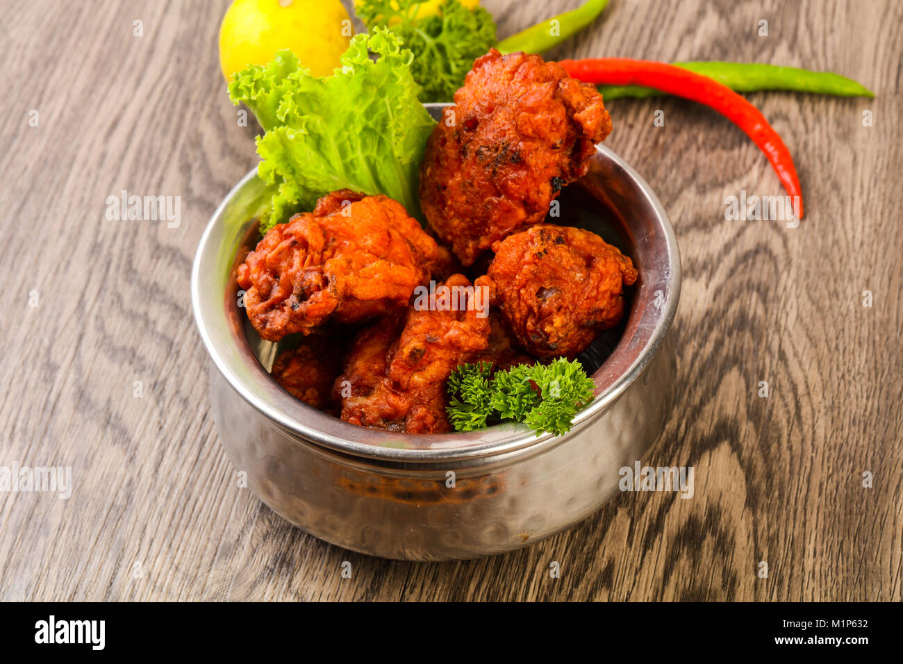 Indian traditional cuisine Chicken lollipops with spices Stock Photo