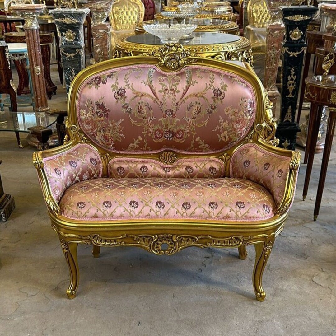 Vintage Furniture Big Pink Chair Vintage 24k Gold Chair Bench Gold