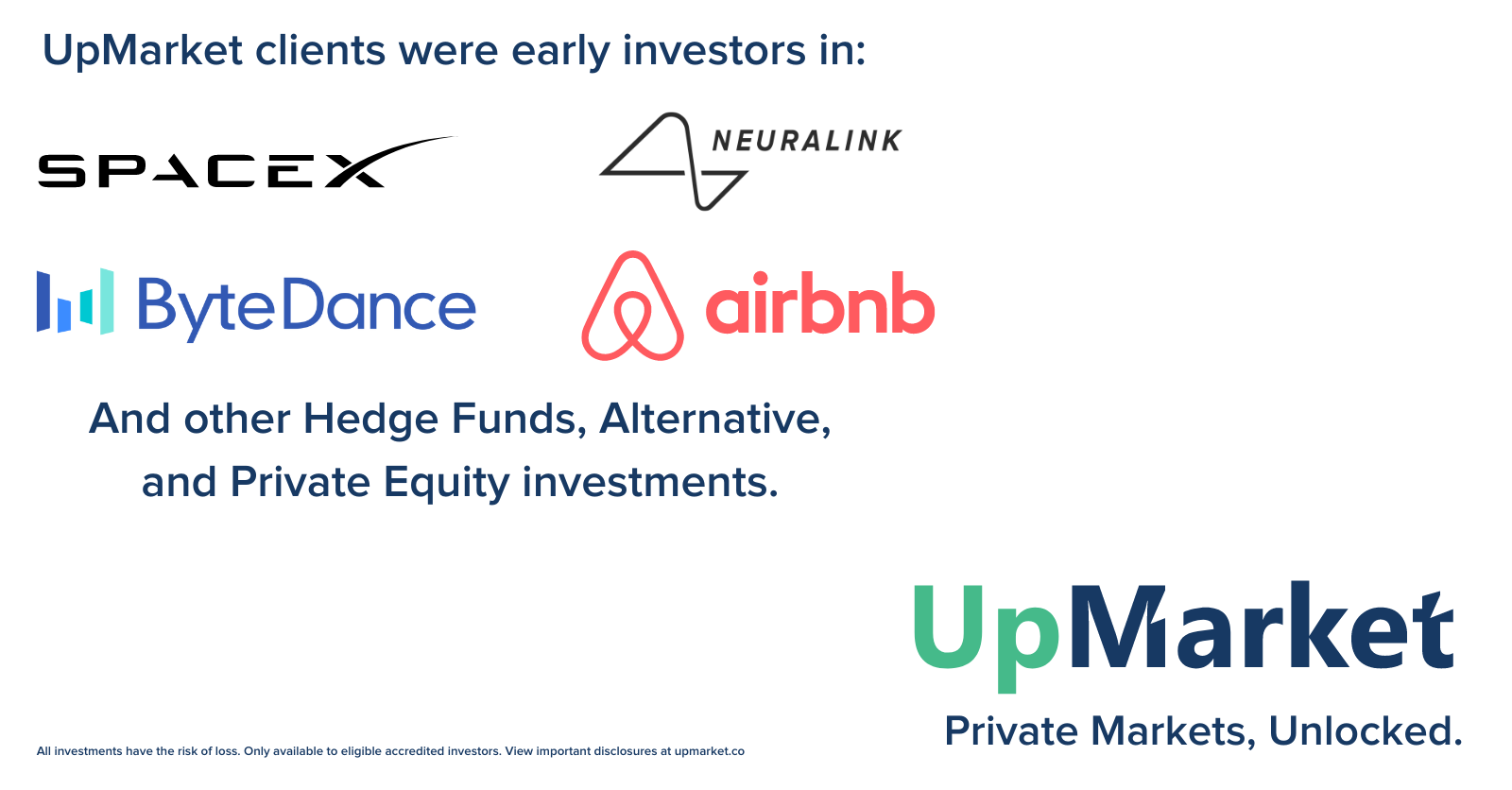 UpMarket Private Markets, Unlocked. Over 120M invested