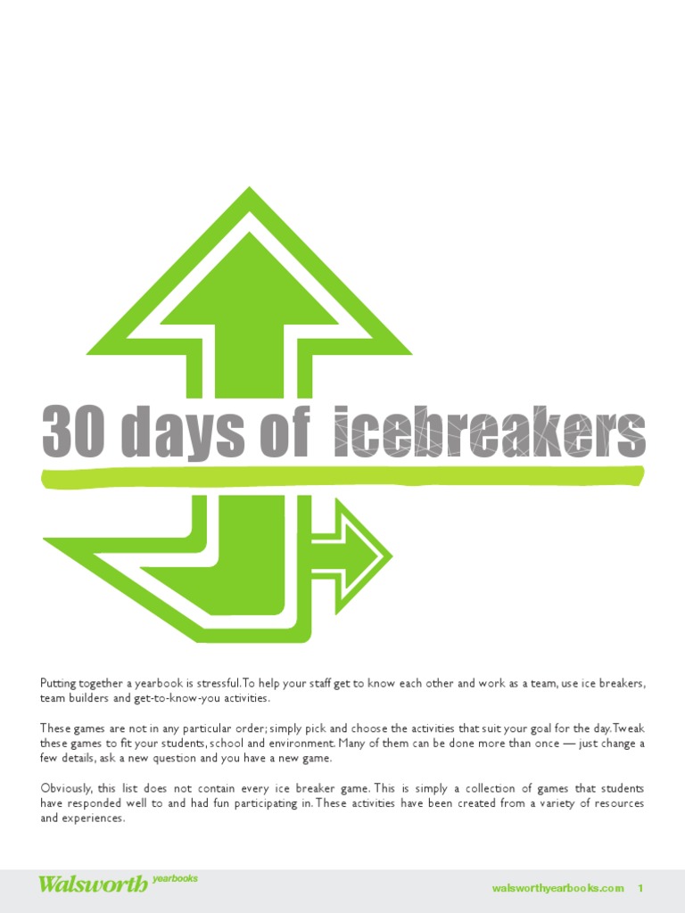 (PDF) Icebreakers and Energisers · PDF file8020 Icebreakers and Icebreakers Pdf Learn how to use icebreakers to facilitate discussion, build. To begin, give your group a challenge or problem to solve. Download this pdf to get 40 simple and fun icebreakers for youth groups, small groups or team building. How to use icebreakers icebreakers are a great way to start class for several reasons. Download a pdf file with various icebreaker. Icebreakers Pdf.