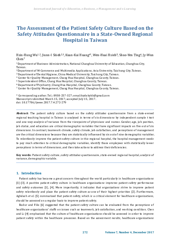 (PDF) The Assessment of the Patient Safety Culture Based on the Safety