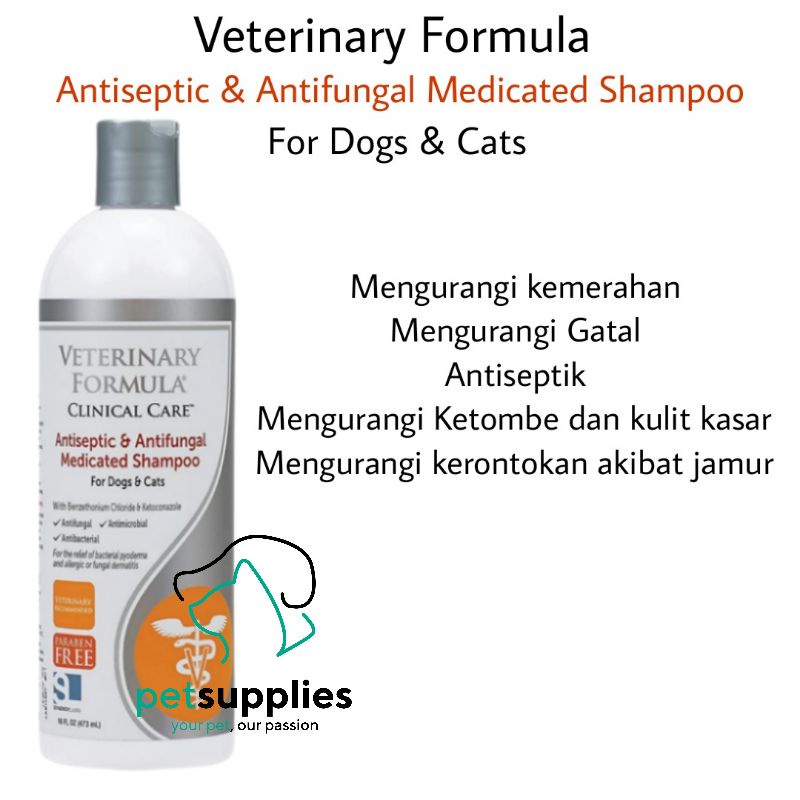 Jual SHAMPOO ANTI JAMUR ANJING DAN KUCING VETERINARY FORMULA MEDICATED Veterinary Formula - Antiseptic & Antifungal Medicated Shampoo If you're searching for the best dog shampoo for sensitive skin, veterinary formula clinical care's antiseptic and antifungal medicated dog. Why we recommend veterinary formula antiseptic and antifungal medicated shampoo for dogs: Veterinary formula clinical care antiseptic and antifungal medicated shampoo for dogs & cats, 16oz & farnam sulfodene dog. Works fast to soothe skin that may be affected by. Veterinary Formula - Antiseptic & Antifungal Medicated Shampoo.