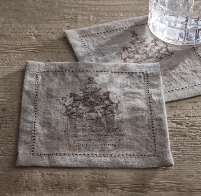 18Th C. English Armorial Crest Cocktail Napkins (Set of 4) Fog