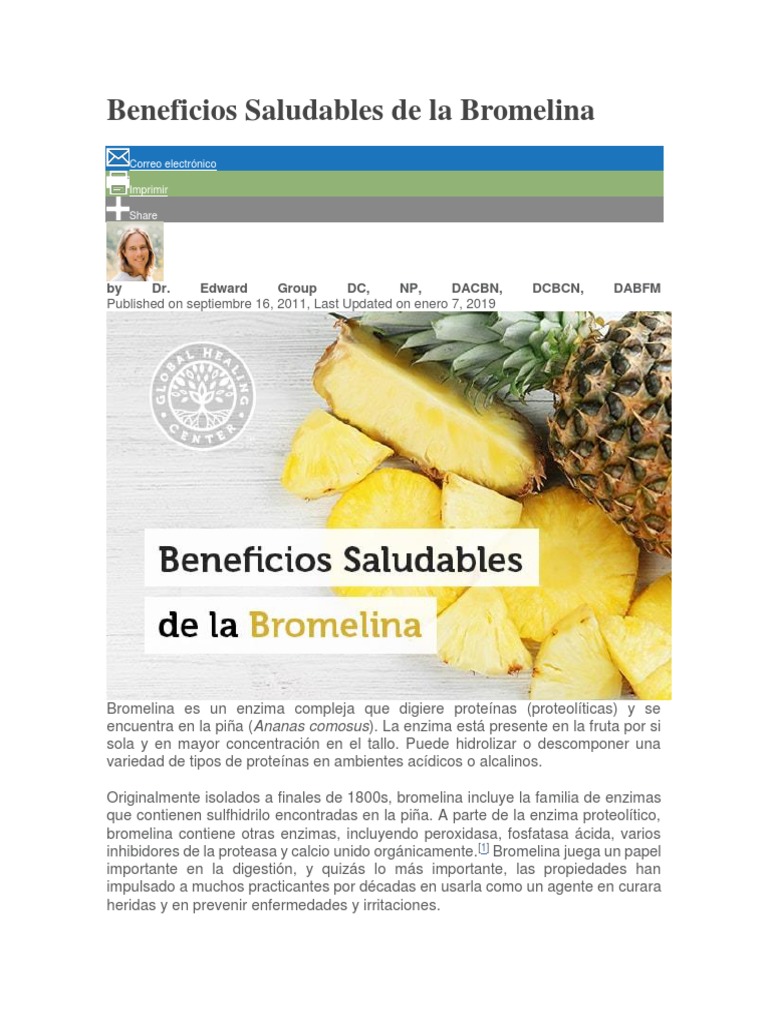 Bromelina propiedades, beneficios para la salud, efectos secundarios Beneficios Bromelina beneficios de la bromelaína. La bromelina ayuda a descomponer las. la bromelina es una enzima digestiva extraída de la piña que ofrece una amplia gama de beneficios para la salud. La bromelaína descompone las proteínas y disminuye la capacidad alergénica de los alimentos en el intestino. algunos de los principales beneficios de la bromelina son: algunos. Beneficios Bromelina.