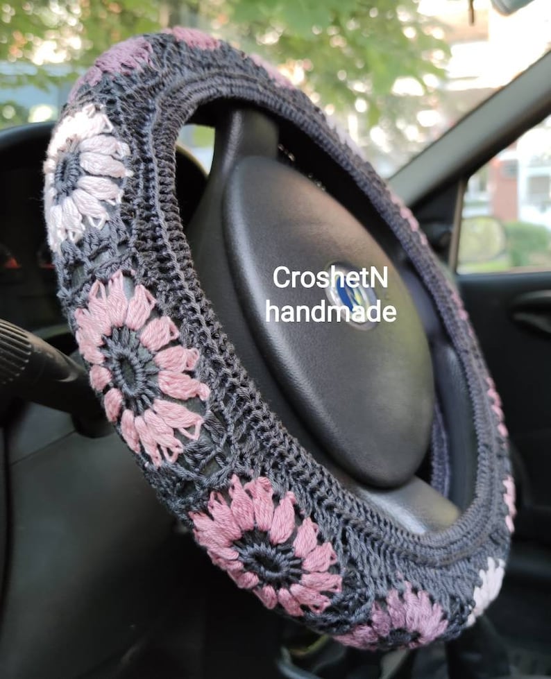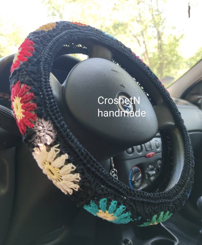 Crochet Sunflower Steering Wheel Cover Hand Crocheted in Etsy Crochet Steering Wheel Cover Patterns with our collection of free crochet steering wheel cover patterns, you can personalize your ride effortlessly. these crochet steering wheel cover free patterns not only protect hands from hot and cold conditions but also. whether you fall into the cozy steering wheel cover vibe, or you are looking for a colorful steering wheel cover, you’re. they're. Crochet Steering Wheel Cover Patterns.