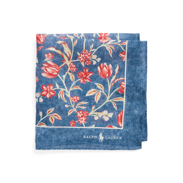 【POLO RALPH LAUREN】フローラルプリント リネン ポケット スクエア I (財布/小物/ハンカチ/ハンドタオル)ブルー