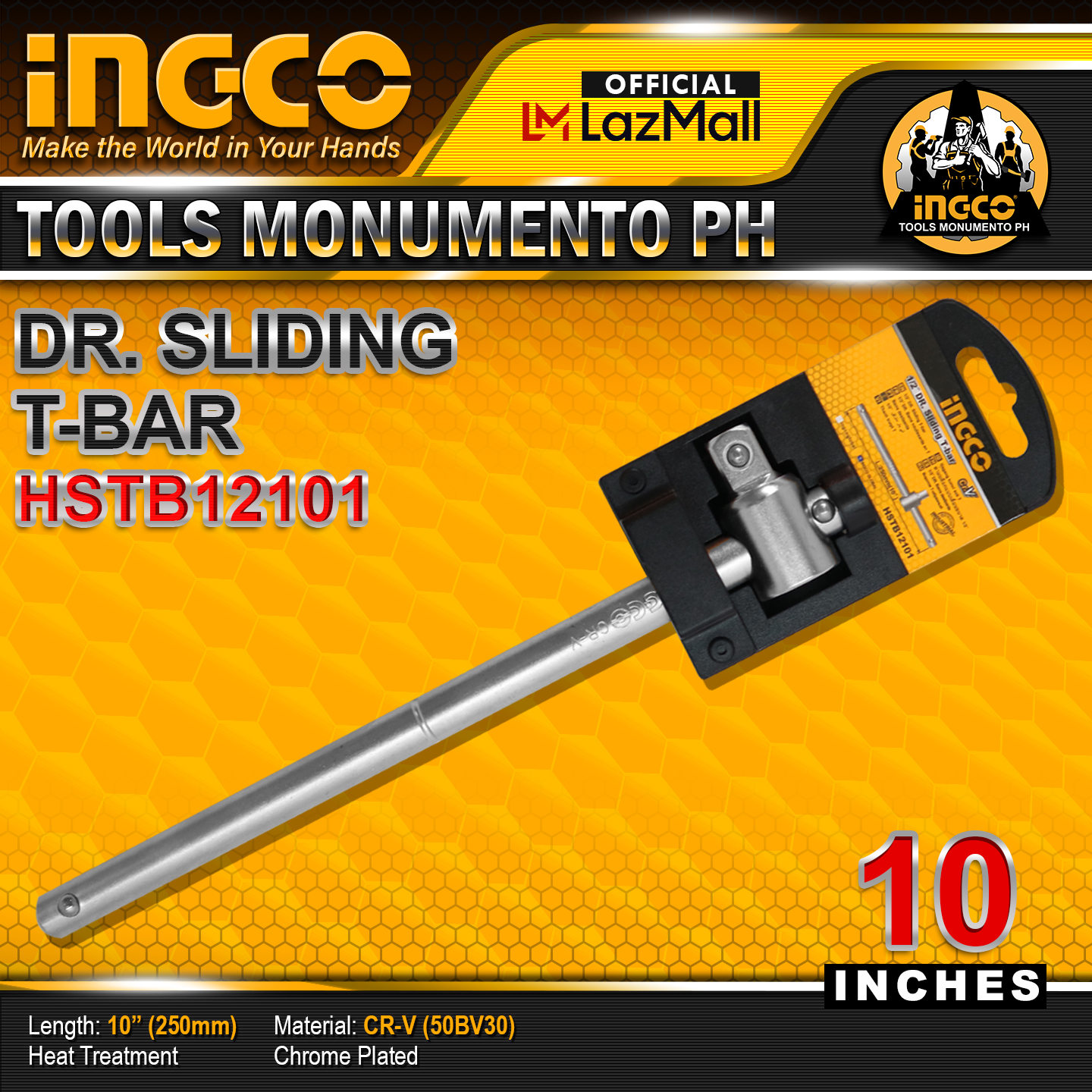 INGCO 10" 250mm 1/2" Dr Sliding TBar (HSTB12101) *INGCO TOOLS