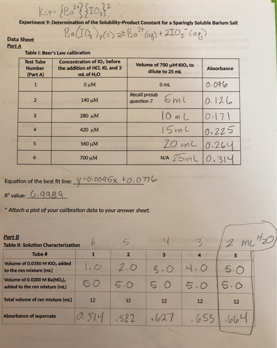Solved Experiment 9 Determination of the SolubilityProduct