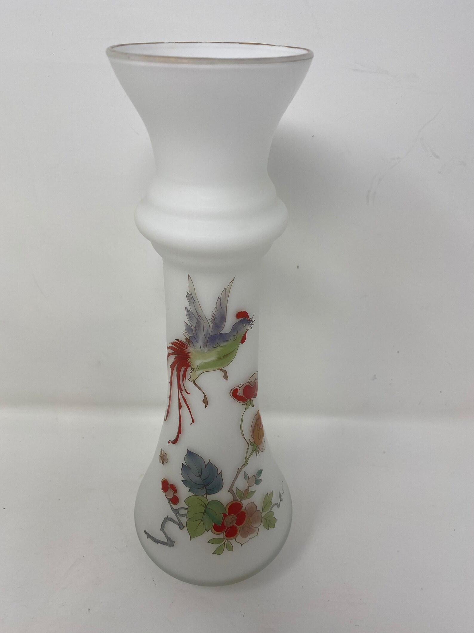 Italian Frosted Case Glass White Bud Vase HandPainted Etsy