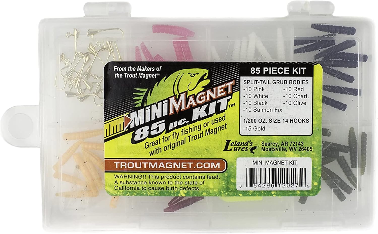 Leland Trout Neon 85 Piece Kit Leland Trout Magnet Kit Leland's lures trout magnet 85 piece mini magnet kit, includes 70 grub bodies and 15 size 14 hooks, for fly fishing or with original trout magnet,. Leland's lures trout magnet 85 piece mini magnet kit, includes 70 grub bodies and 15 size 14 hooks, for fly fishing or with original trout magnet, chatches all types of fish Included are (10). Leland Trout Magnet Kit.