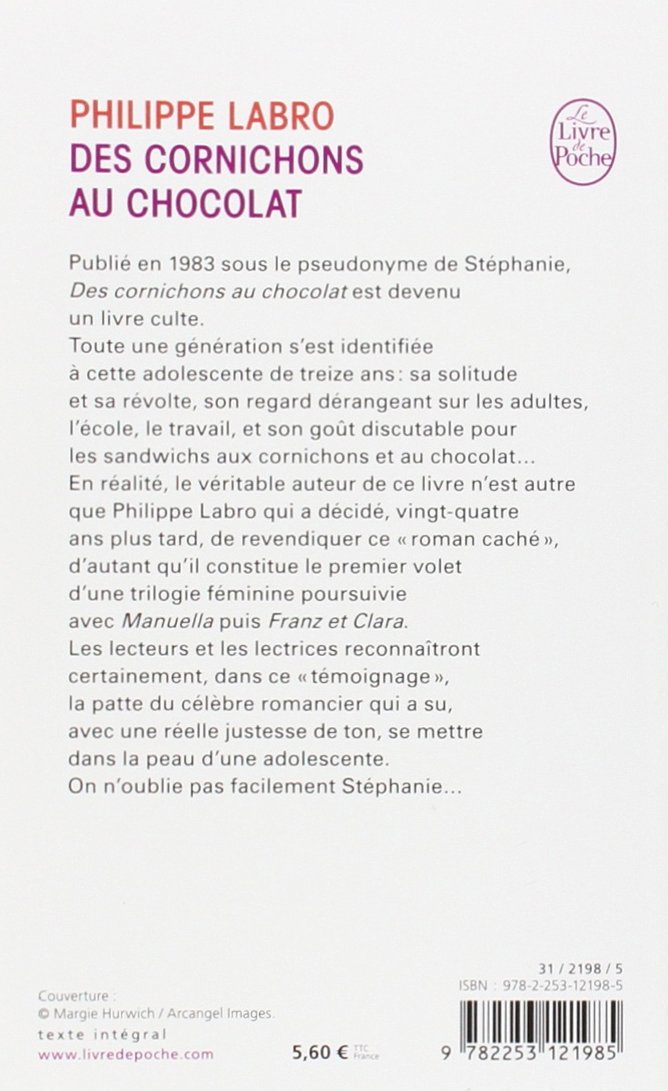Des cornichons au chocolat 9783125921368 Labro, Philippe Des Cornichon Au Chocolat Pdf un journal frais et sincère écrit dans le style parlé et qui permettra au lecteur de renouer avec l'adolescence éternelle, sa gaieté. un journal frais et sincère écrit dans le style parlé et qui permettra au lecteur de renouer avec l'adolescence. publié en 1983 sous le pseudonyme de stéphanie, des cornichons au chocolat est devenu un livre. Des Cornichon Au Chocolat Pdf.