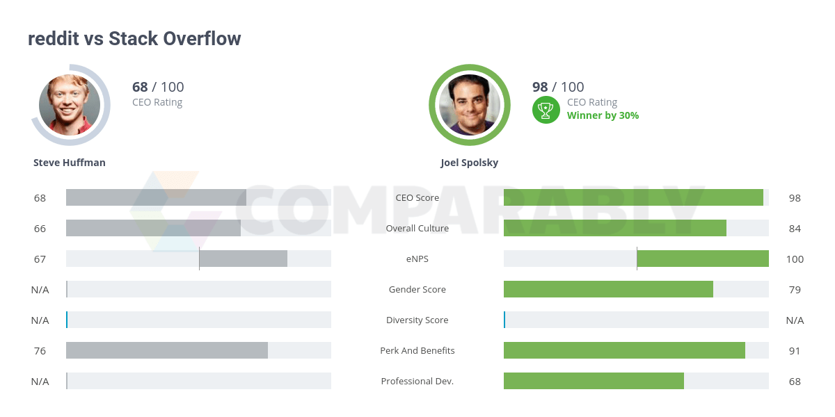 reddit vs Stack Overflow Comparably