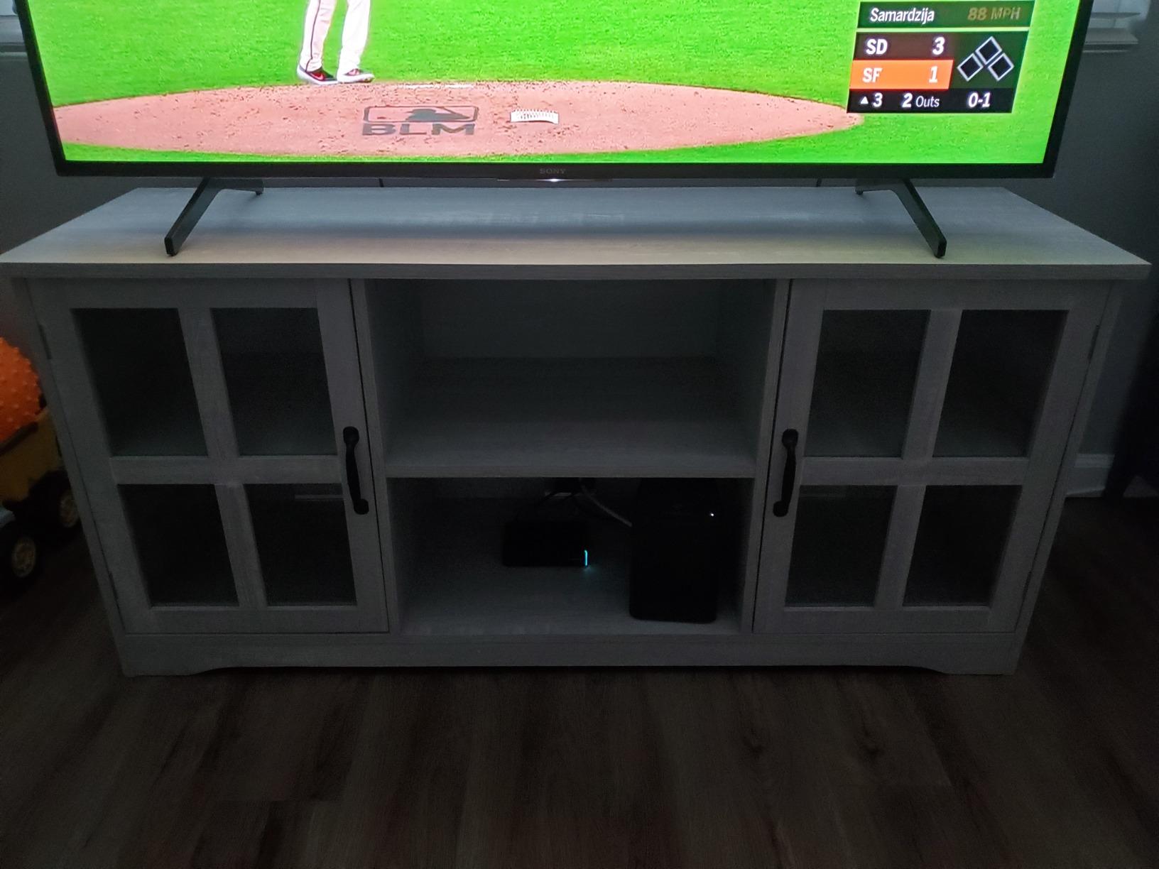 This stylish, rustic farmhouse tv stand blends with a modern aesthetic by featuring glass cabinet doors. explore belleze's trendsetting range of modern tv stands. Showcase your tv with stylish and practical media consoles. Holds up to 60 tvs, featuring adjustable. the belleze cori white modern tv stand combines elegance and practicality. Elegantly designed corners and a dry. belleze modern 52 inch traditional tv stand & media entertainment center. buy belleze modern 52 inch traditional tv stand & media entertainment center console table for tvs up to 55 inch or sideboard.