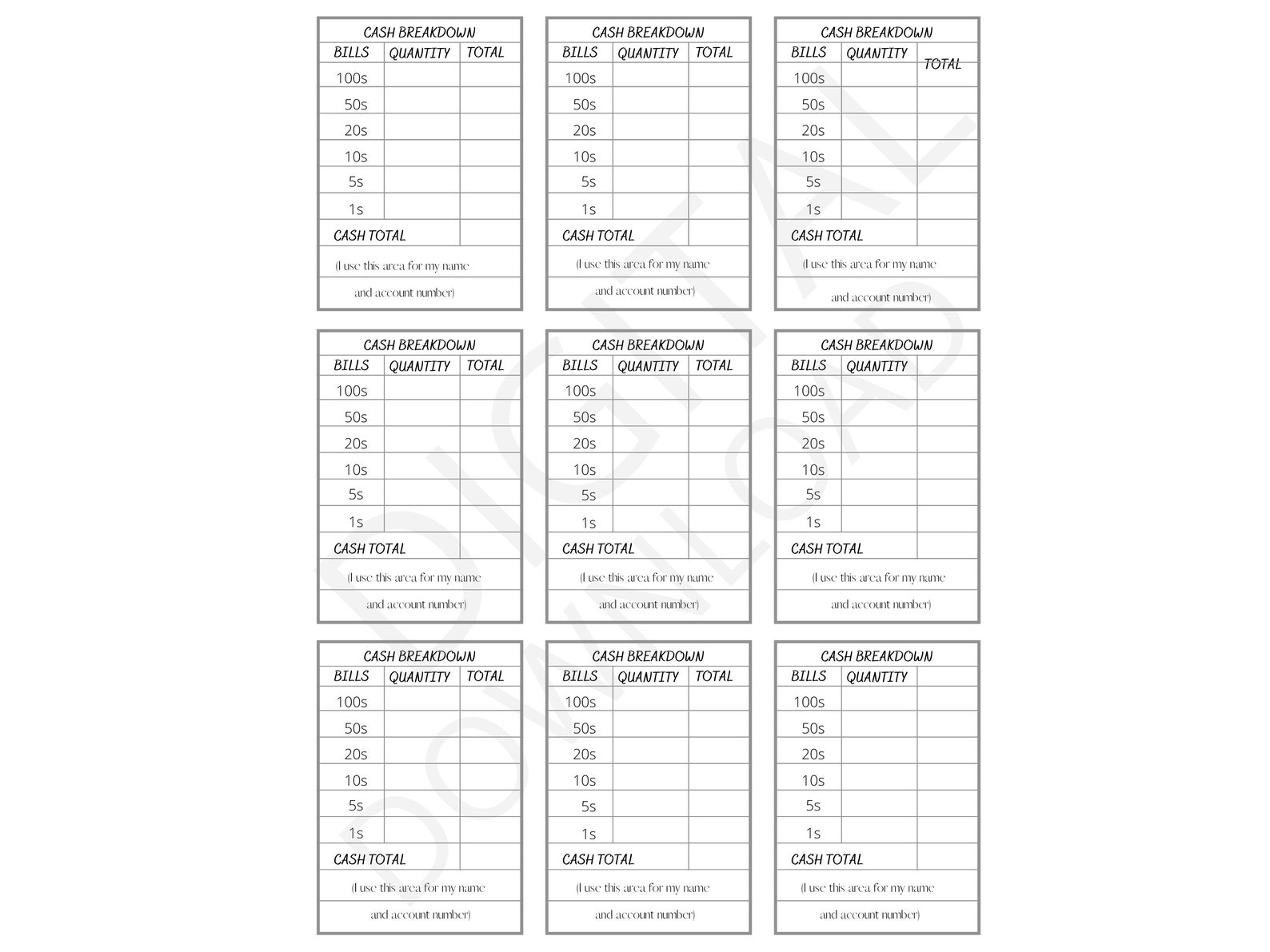 Printable Cash Breakdown Slips DIGITAL Etsy Cash Denomination Slip When you fill out a deposit slip, you will enter cash amounts in one area and check amounts in another area. This serves as a record between the bank and the depositor. the cash deposit slip provided in tally.erp 9 has all the contents of cash deposit slip such as account number, account holder. you can use a. Cash Denomination Slip.
