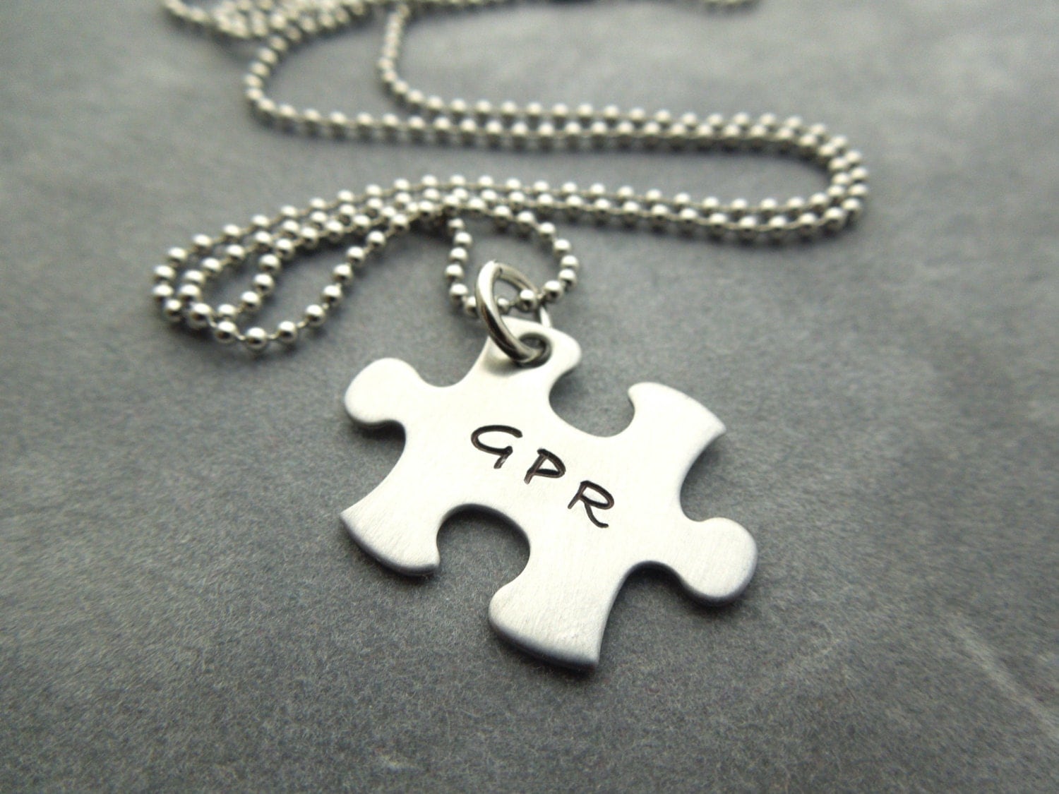 Personalized Puzzle pieces necklace hand stamped stainless
