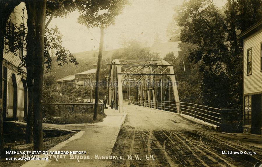 Postcard Depot Street Bridge, Hinsdale, New Hampshire Railroad History