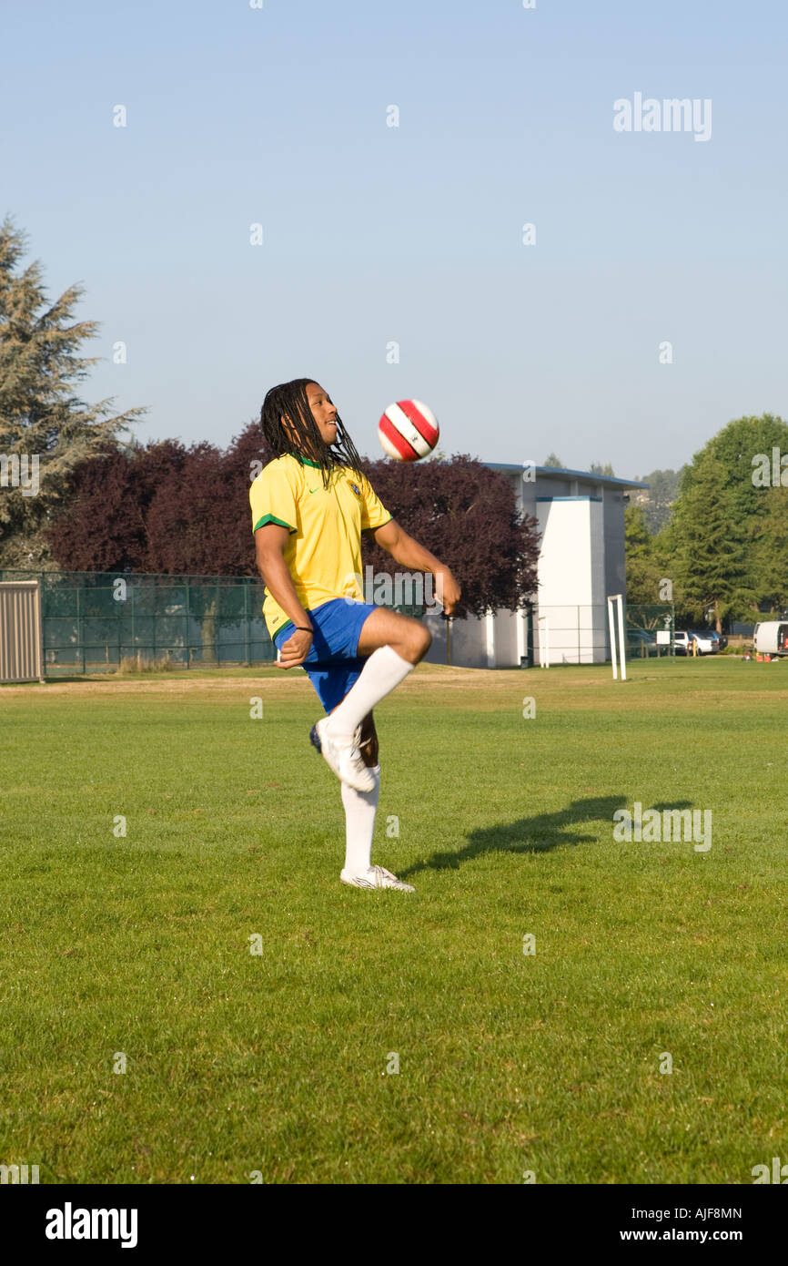 playing soccera black African American man playing soccer Stock Photo