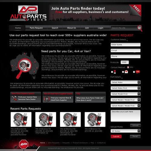 New site Design For Auto Parts Finder page design contest