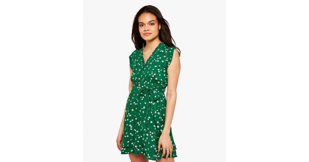 Apricot Green Daisy Frill Mini Dress New Look