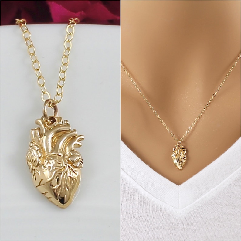 Anatomical Heart Necklace Sterling silver anatomical heart necklace • dainty heart pendant • personalized anatomy charm tixijewelry star seller star. Attached to an 18 inch 14k gold filled cable chain with secure. This dainty necklace is handcrafted featuring an adorable detailed 14k gold filled anatomical heart charm. Perfect gift for cardiologists, doctors, med students, nurses, firefighter paramedic, emt or any lover of anatomy!. Anatomical Heart Necklace.