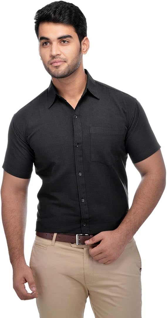 Buy SURYA KHADI Men's Classic Fit Shirt (KH_1_Black_46New_Black_46) at