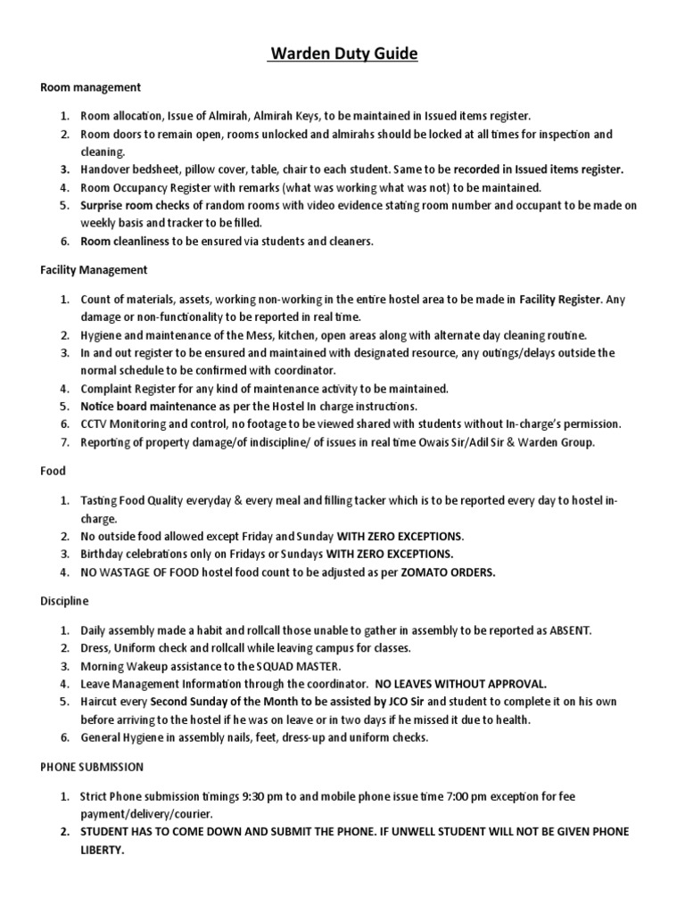 Warden Duty Guide Procedures and Responsibilities for Effective Hostel