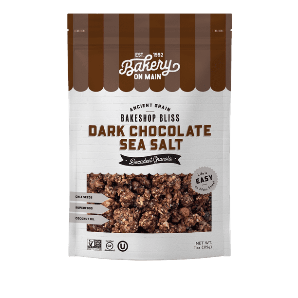 Bakery On Main, Bliss, GlutenFree, Decadent Granola + Ancient Bakeshop Bliss Granola Three 11oz bags of bakery on main's white chip raspberry swirl granola. Six 11oz bags of bakery on main's dark chocolate sea salt granola; Combining the delicious flavors of dark chocolate and premium nuts and sprinkles, this granola is perfect for sprinkling over ice cream or into a bowl of milk for a wholesome breakfast. Six 11oz bags of bakery. Bakeshop Bliss Granola.