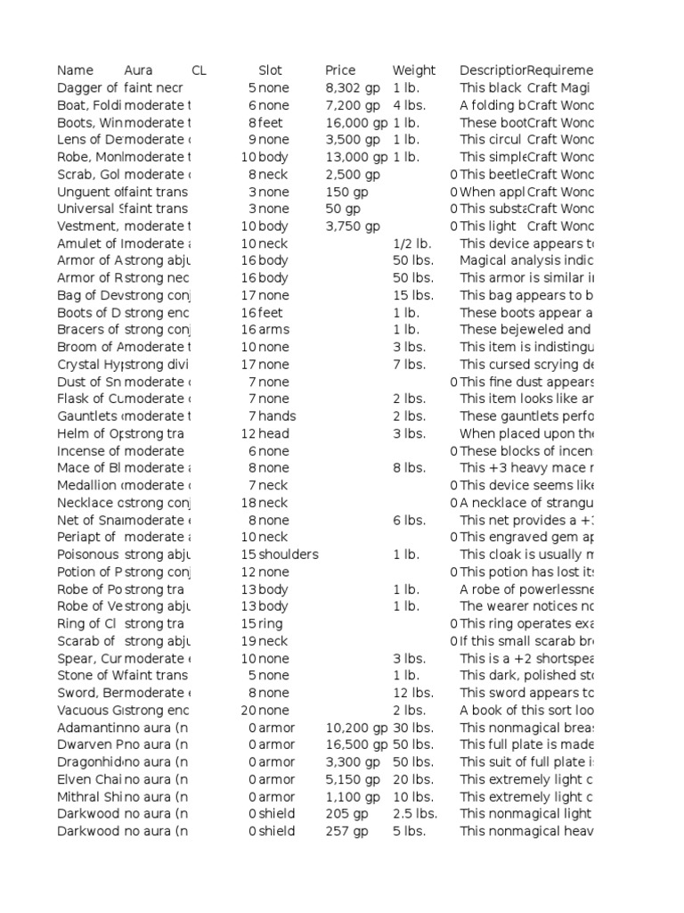 D&D 3.5 Magic Items List