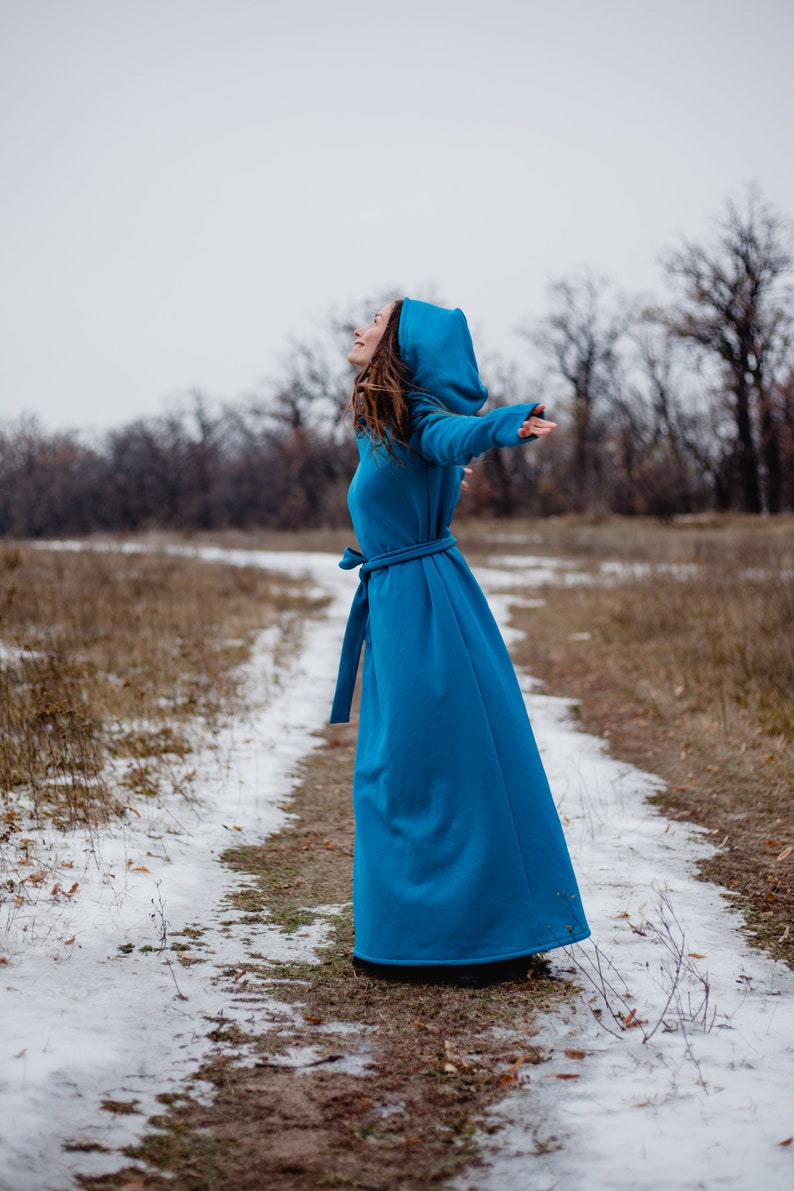 Polartec dress warm hooded dress blue winter dress blue Etsy