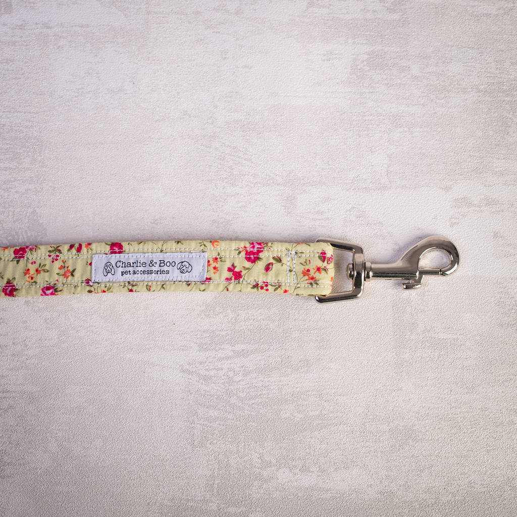 pink floral dog lead/leash for girl or boy dogs by charlie and boo