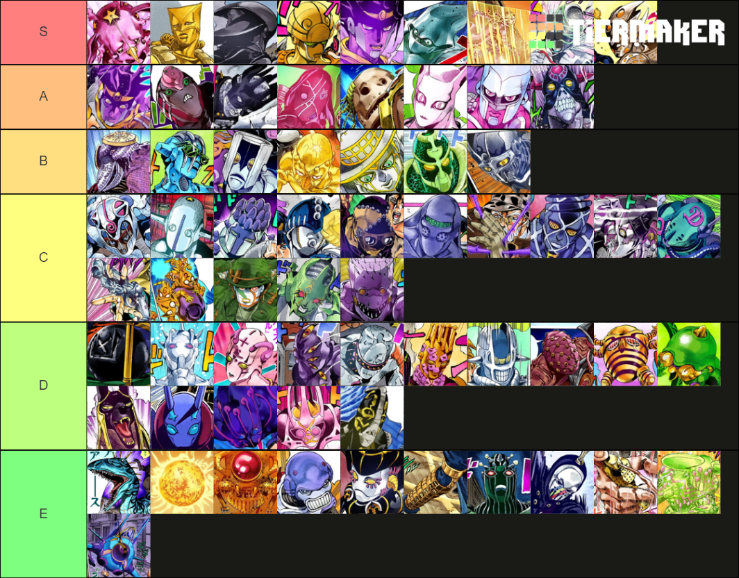 Jojo Stands Tier List Rankings) TierMaker Stands Jojo Tier List The jojo's bizarre adventure all stands tier list below is created by community voting and is the cumulative average rankings. Although turning into a snail sucks, i think diavolo would be able to get close enough to eliminate wr using his stand. Edit the label text in each row. Create a ranking for best stands in jojo. Kc as a. Stands Jojo Tier List.