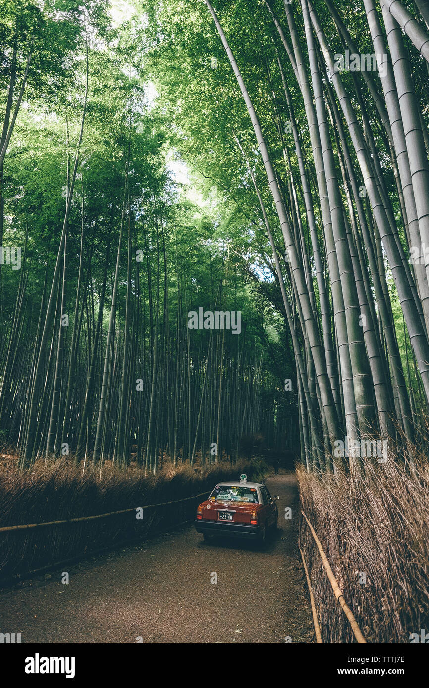 Car on road amidst bamboo plants Stock Photo Alamy