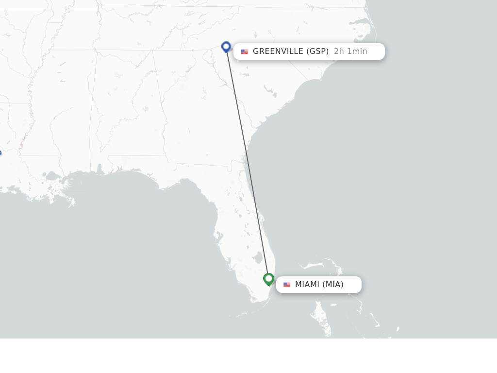 Direct (nonstop) flights from Miami to Greenville schedules