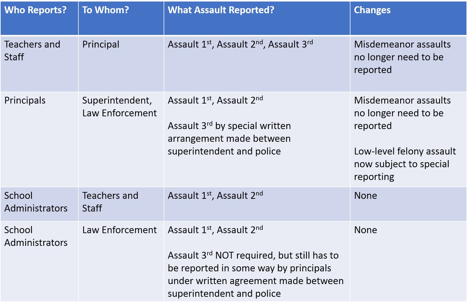 Education Exchange Corps School Assault Reporting Requirements for